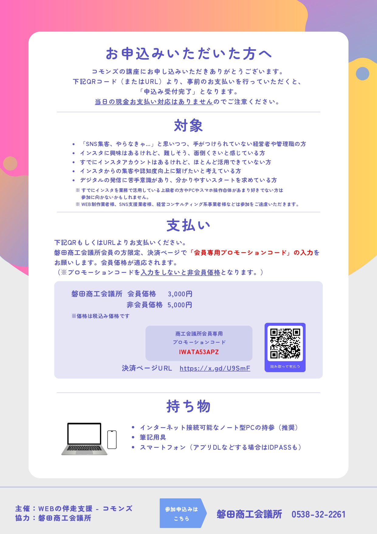 【受 講 料】 磐田商工会議所 会 員:3,000円
