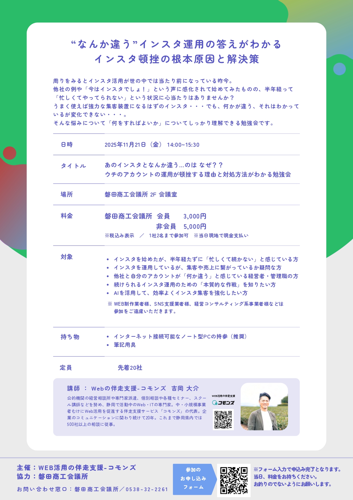 【講 師】 WEB活用伴走支援・コモンズ 吉岡大介 氏