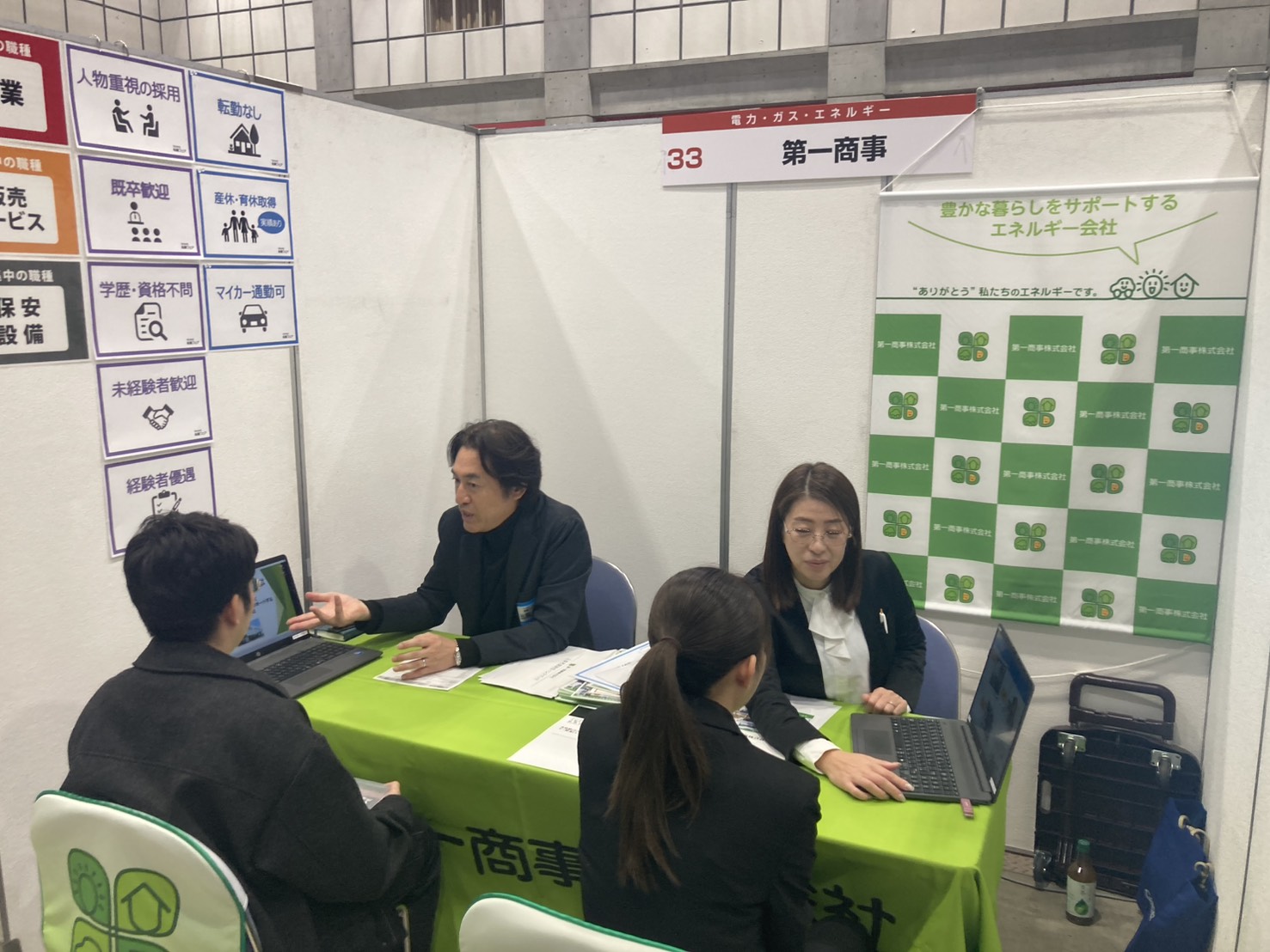 マイナビ転職フェアは、企業と求職者とのマッチングを目的とした開催エリア・開催回数・開催規模で業界最大級の合同企業説明会であり、当日は各企業ブースで事前申し込みや当日来場した求職者に対して、採用に向けた企業説明を行いました。