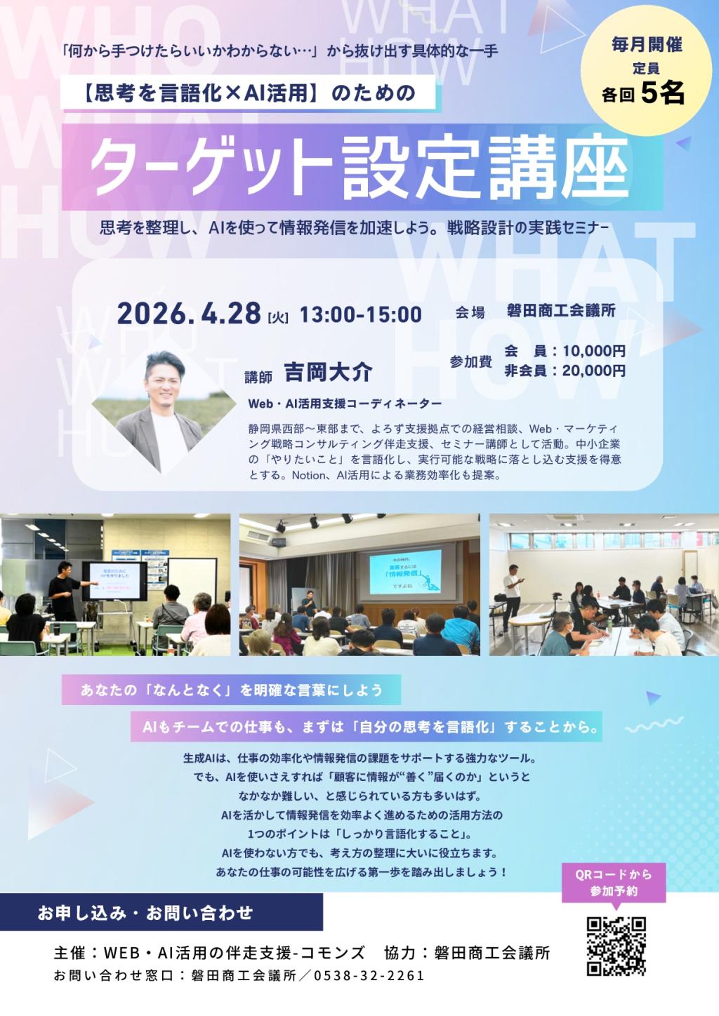 Web活シリーズ・実践講座 @磐田商工会議所【4/28】思考を言語化×AI活用のためのターゲット設定講座 開催のお知らせ