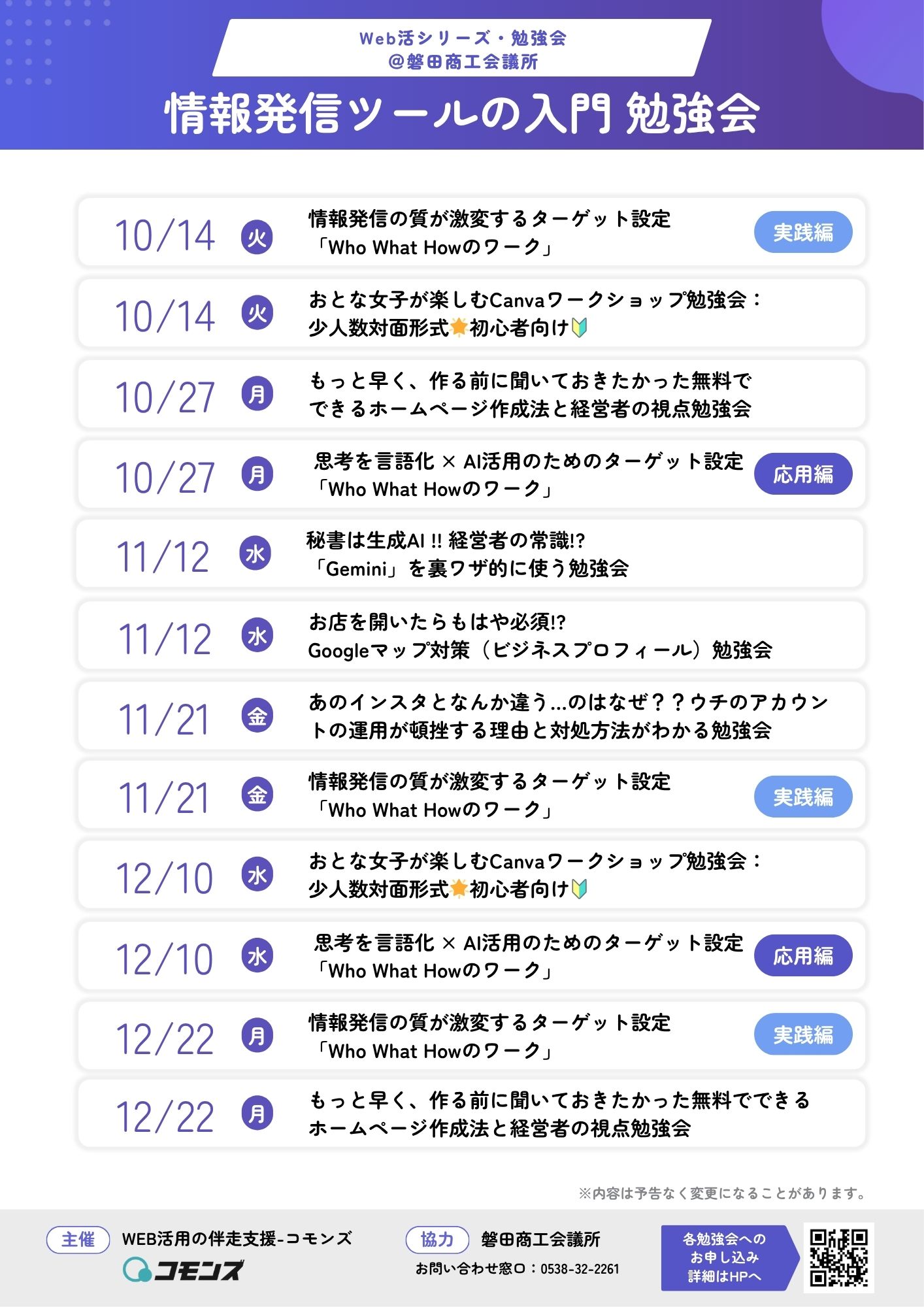 Web活シリーズ・勉強会@磐田商工会所 開催のお知らせ